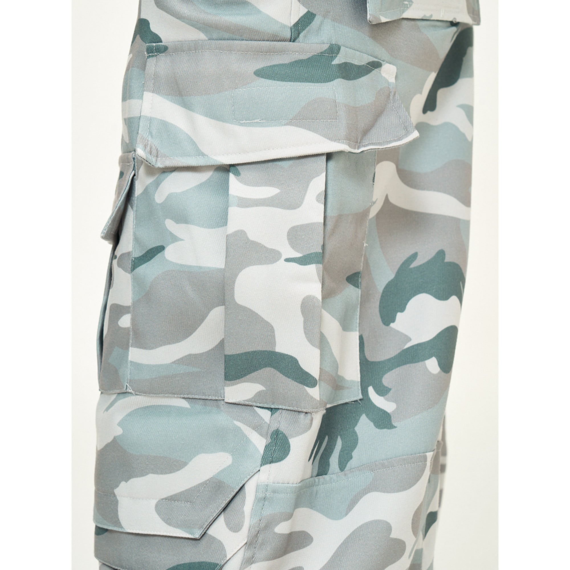 爽やかなカモフラージュ柄が印象的なワイドカーゴパンツ。