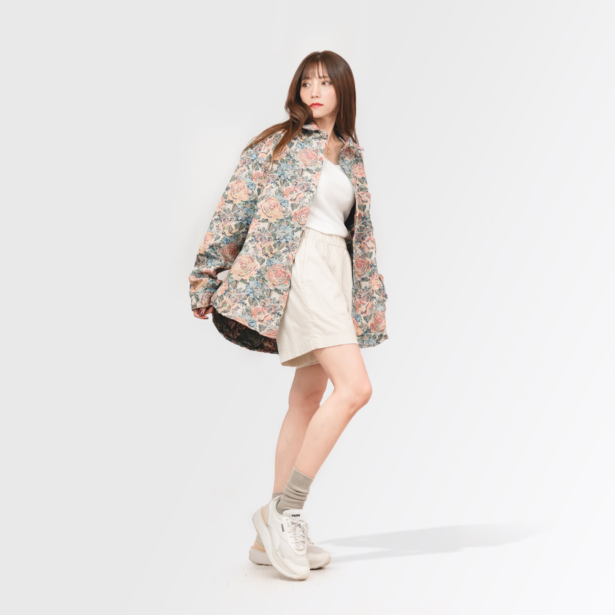 マルチカラーのフラワー柄が鮮やかで存在感溢れるジャガードシャツ。