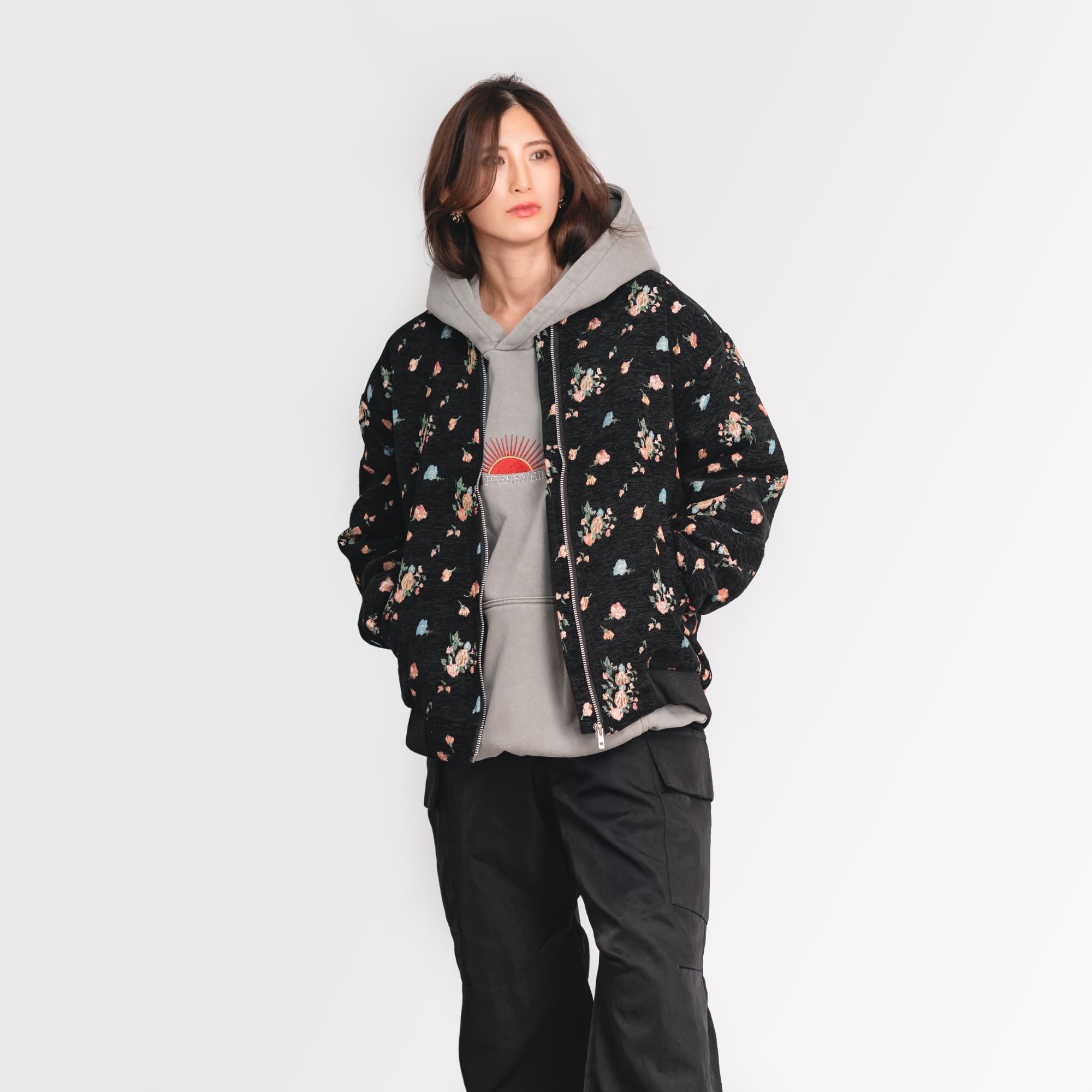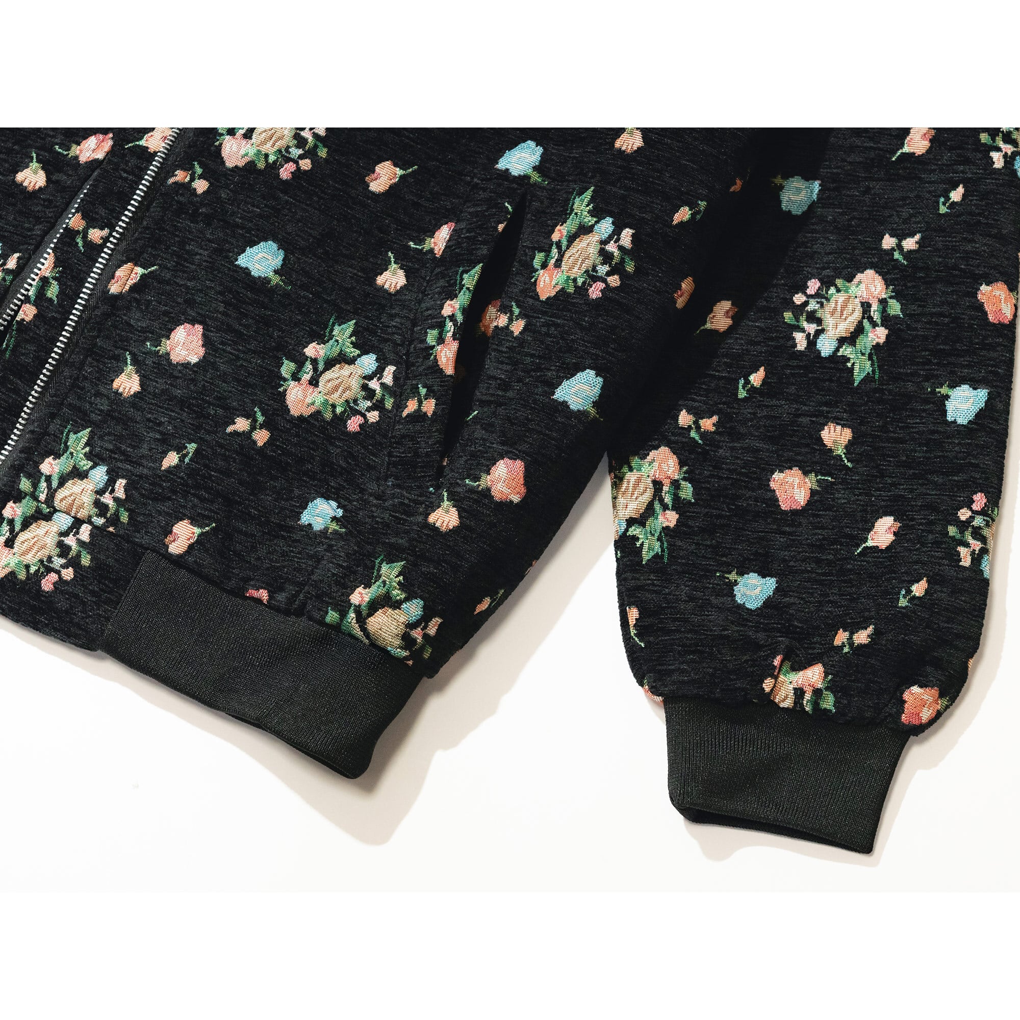 繊細な花柄をブラックベースに落とし込んだ、上品なジャガードブルゾン。