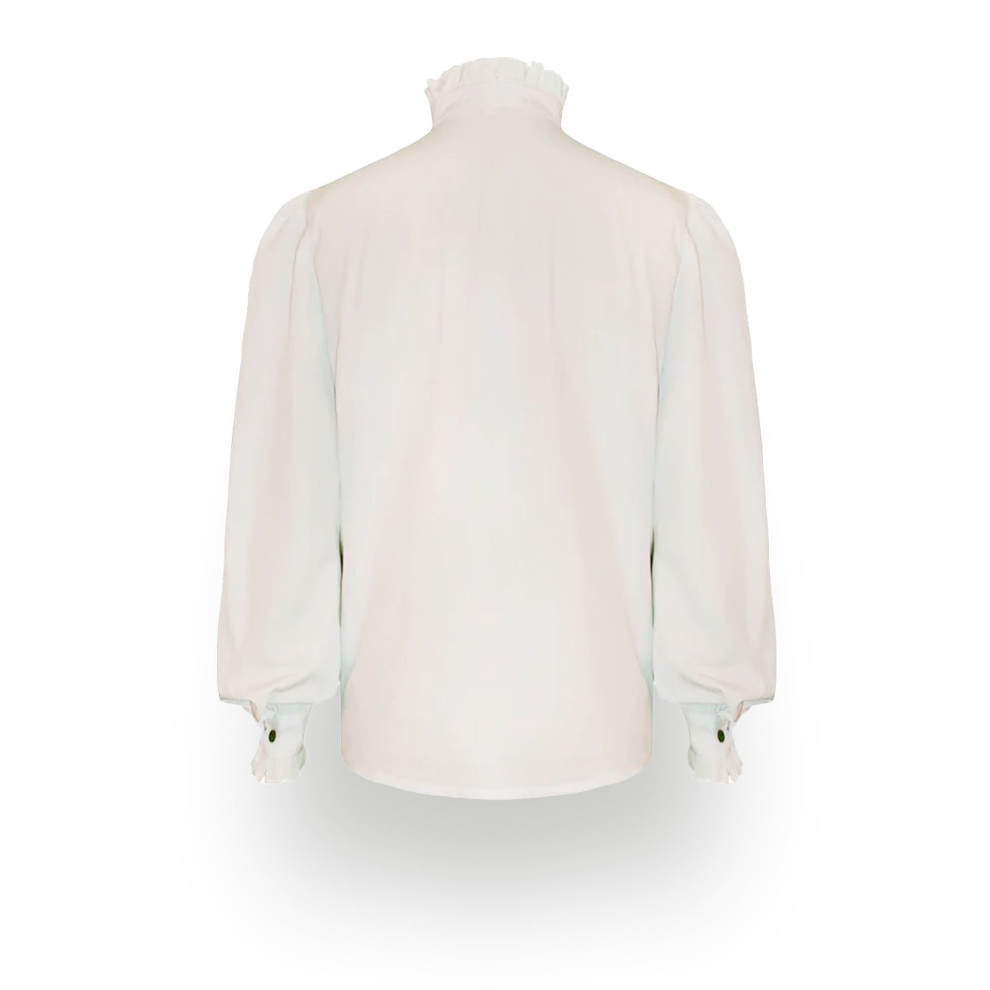 ふんわりと膨らむビショップスリーブは腕を長く見せる効果も。しなやかな素材と上品さが絶妙に両立したドレスシャツです。
