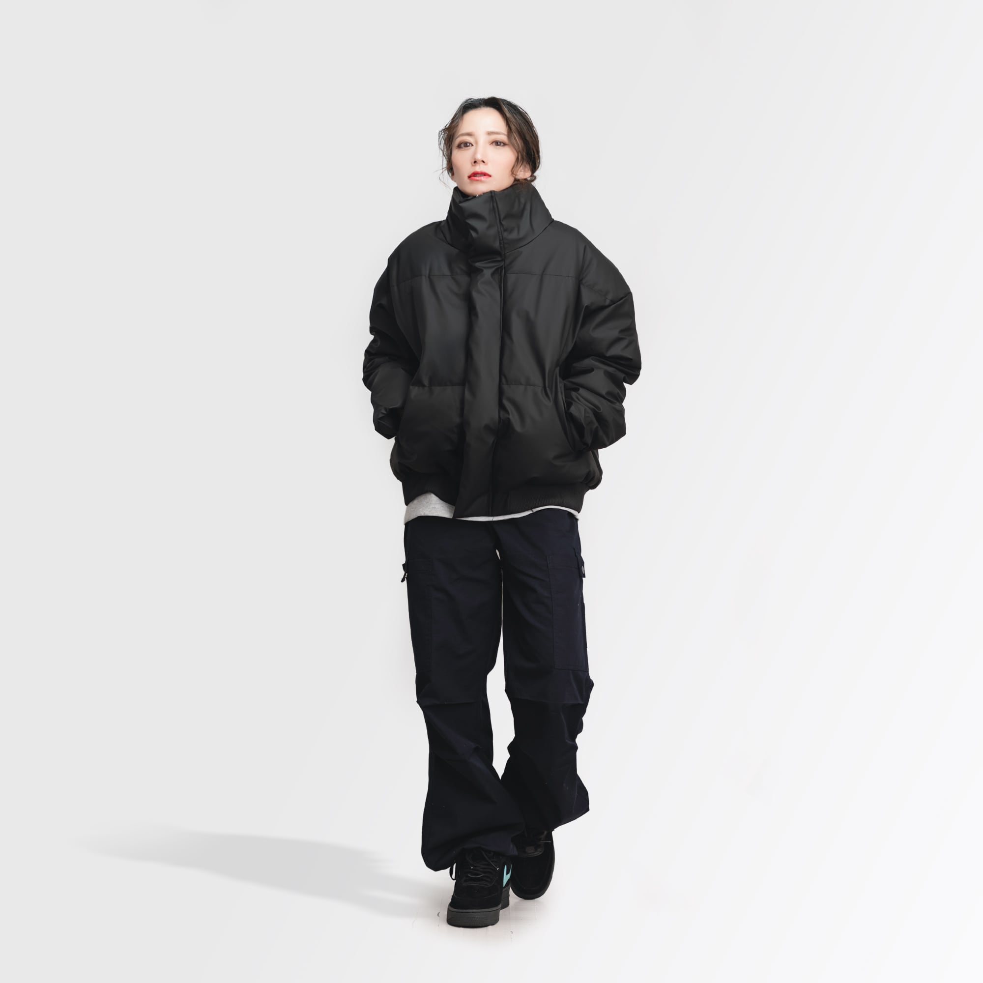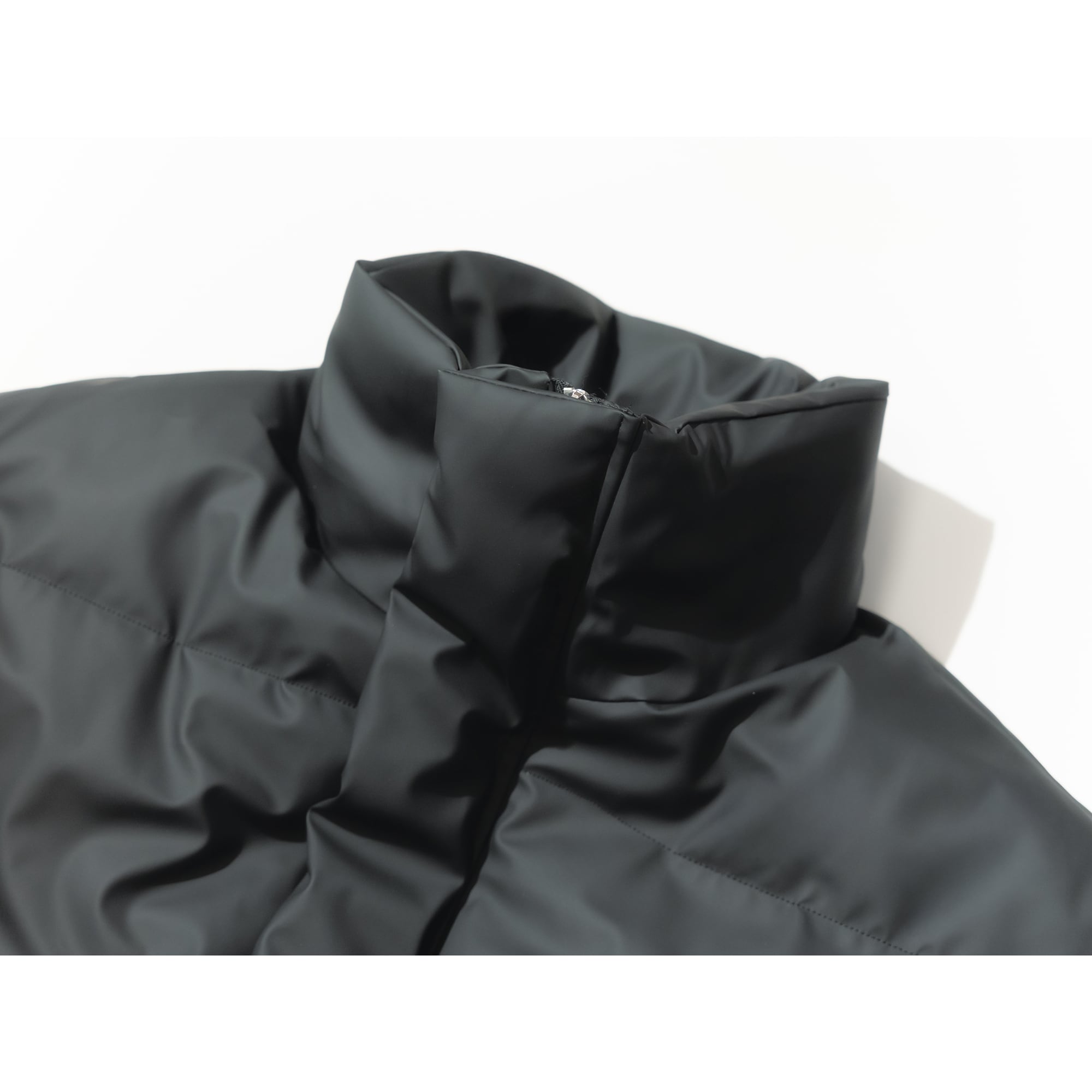 無駄のないミニマルなシルエットに、重厚感をまとったスタンドネックデザイン。