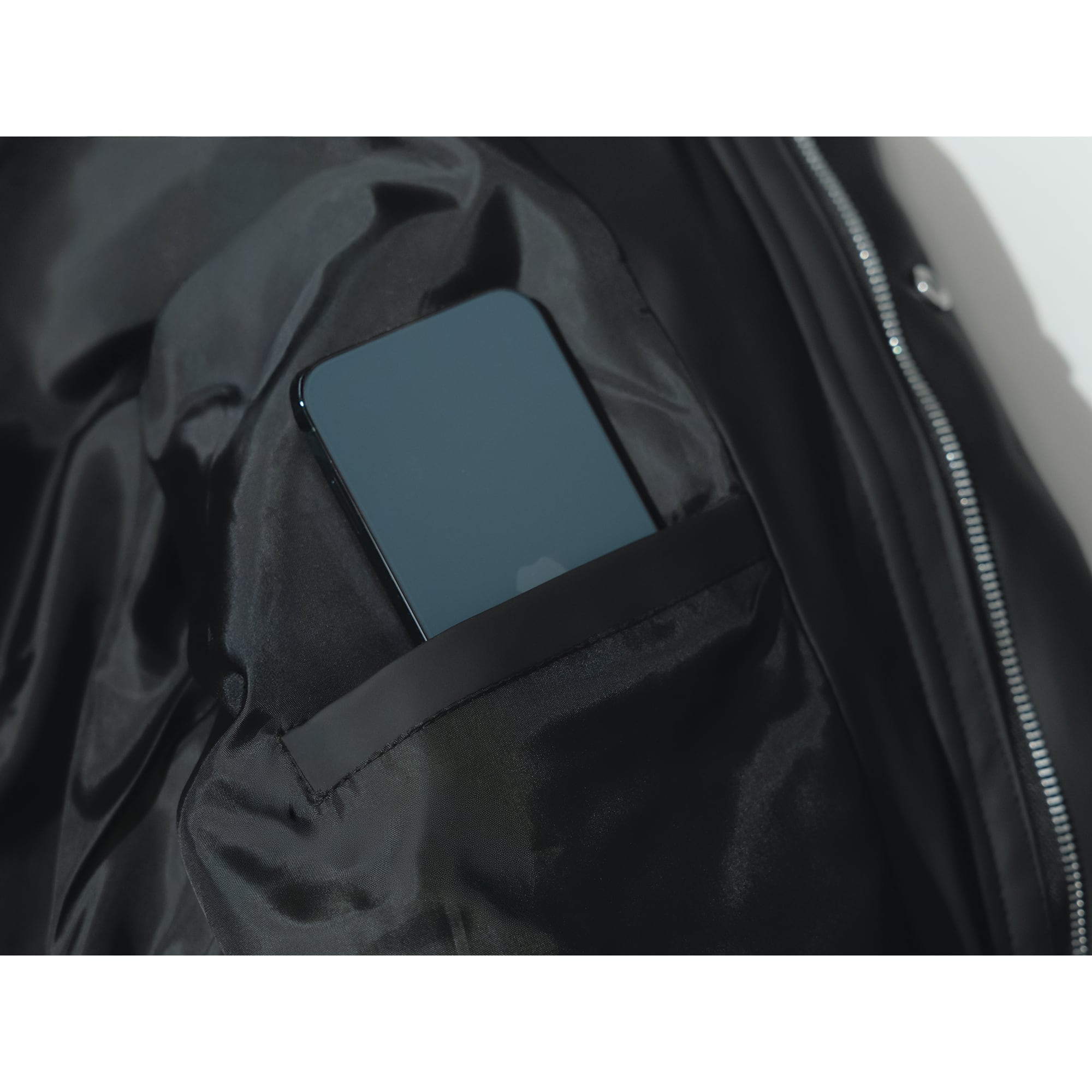 フロントと左胸の内ポケットで利便性を確保しながら、全体のラインはすっきりと洗練された印象に。