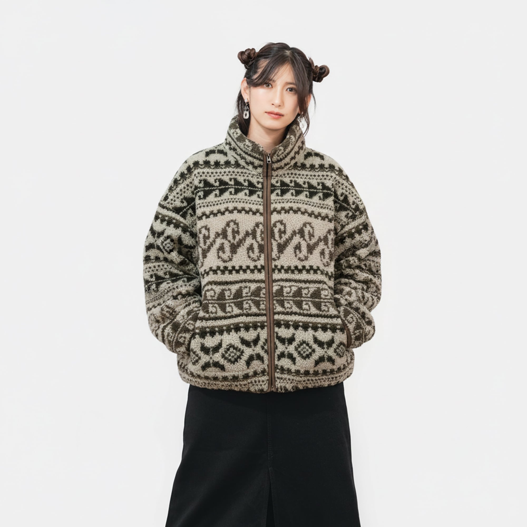 ネイティブデザインフリースジャケット