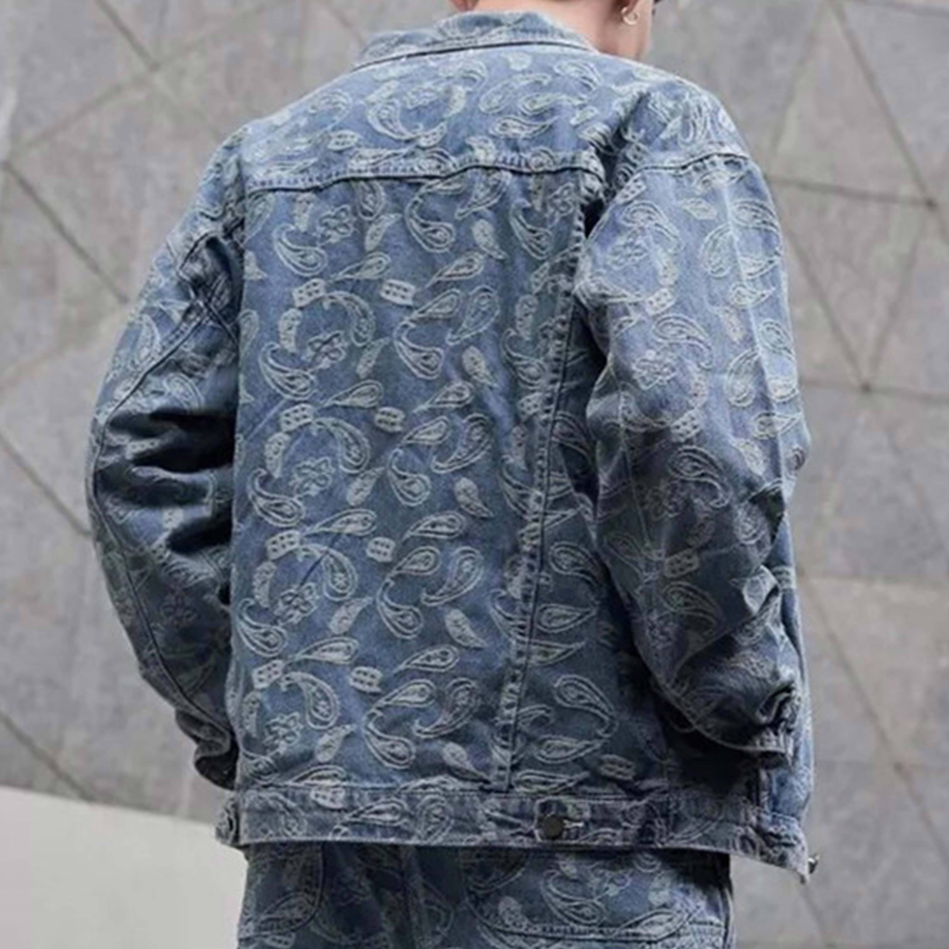 ペイズリー柄のダメージ加工がほどこされたデニムジャケットです。