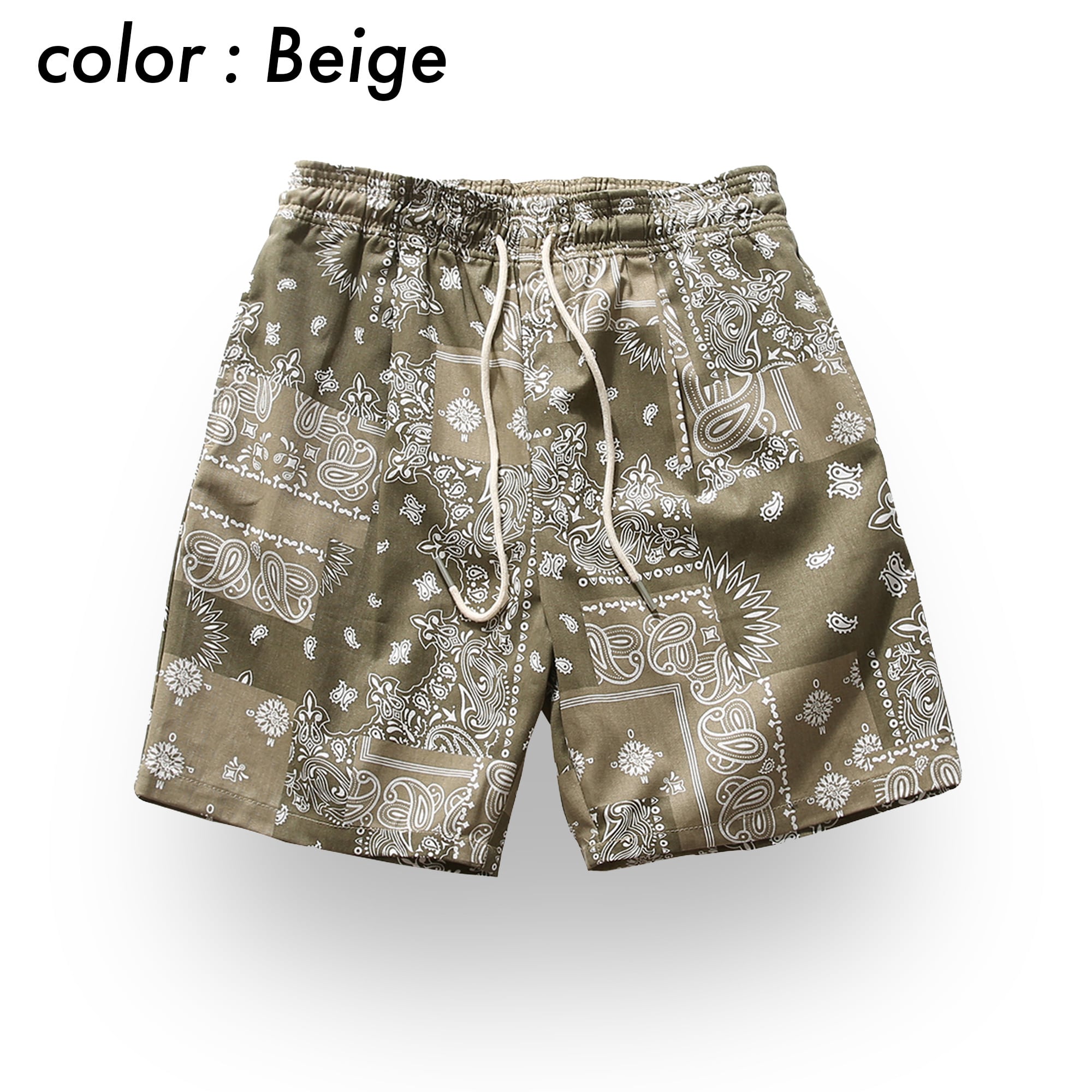 ペイズリーデザインショーツ_ブラック or ネイビー or ベージュ or カーキ