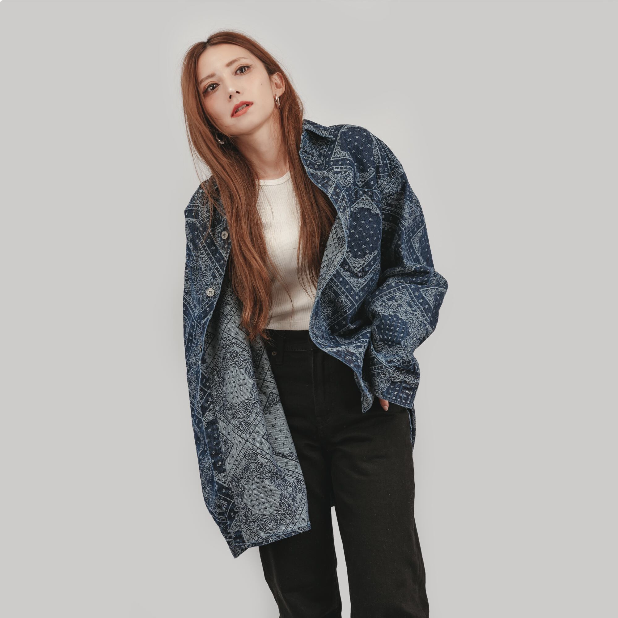 ペイズリーデザインデニムシャツ