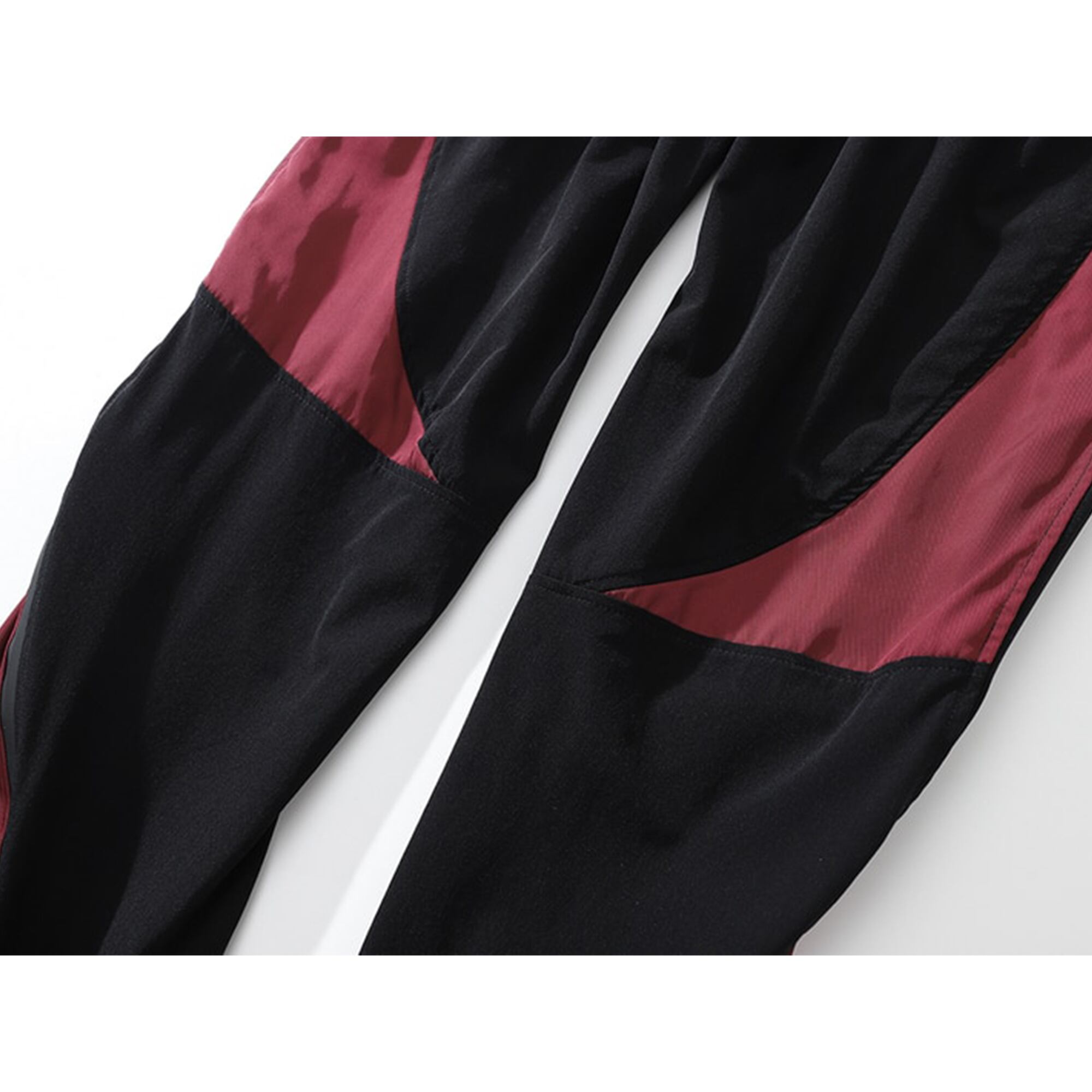 サイドとポケット部分にほどこされたレッドとグレーのパッチワーク、ズボン丈いっぱいに伸びるサイドジッパーで特徴的なシルエットのトラックパンツ。