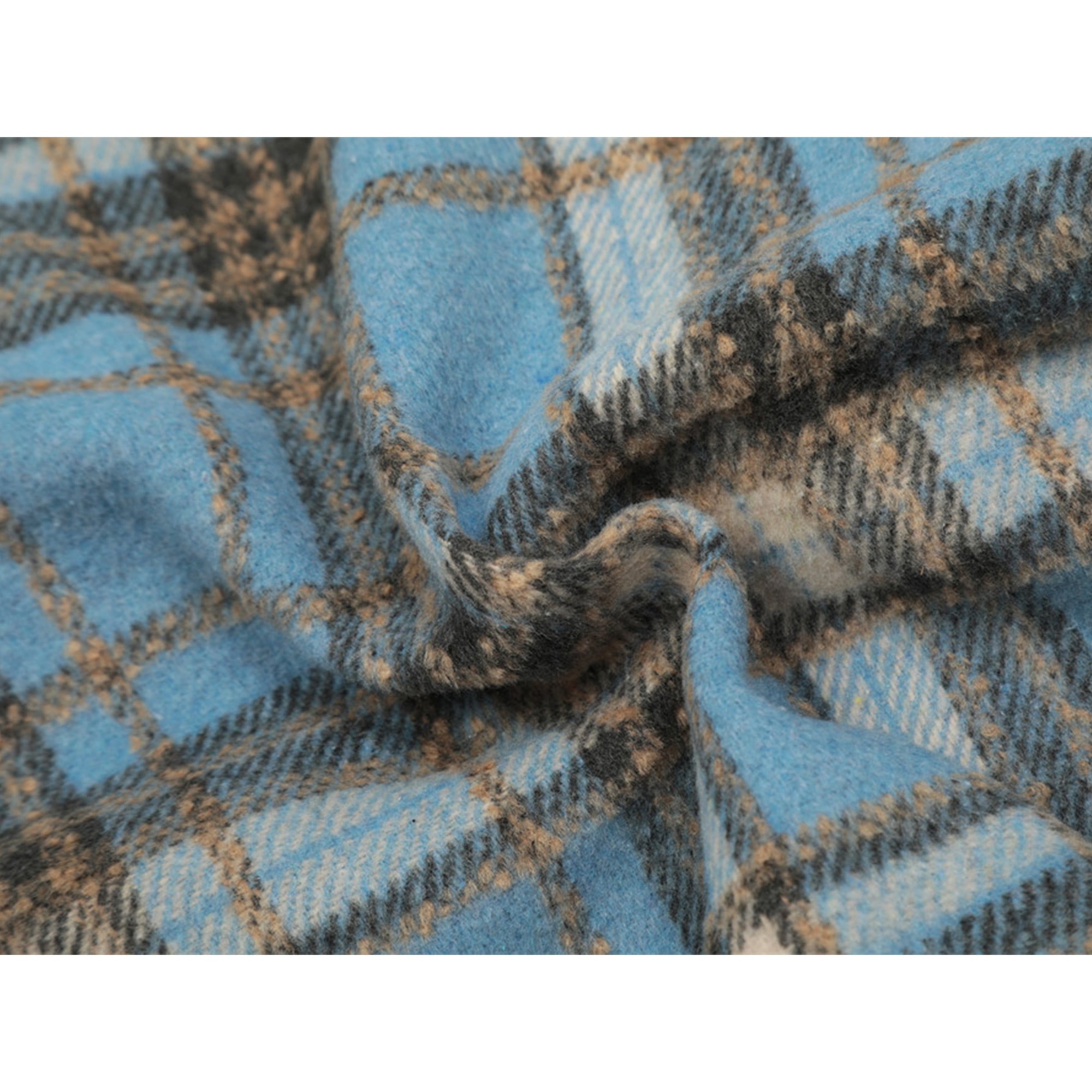落ち着いた配色に淡いベージュのチェックパターンが印象的なアウタージャケット。