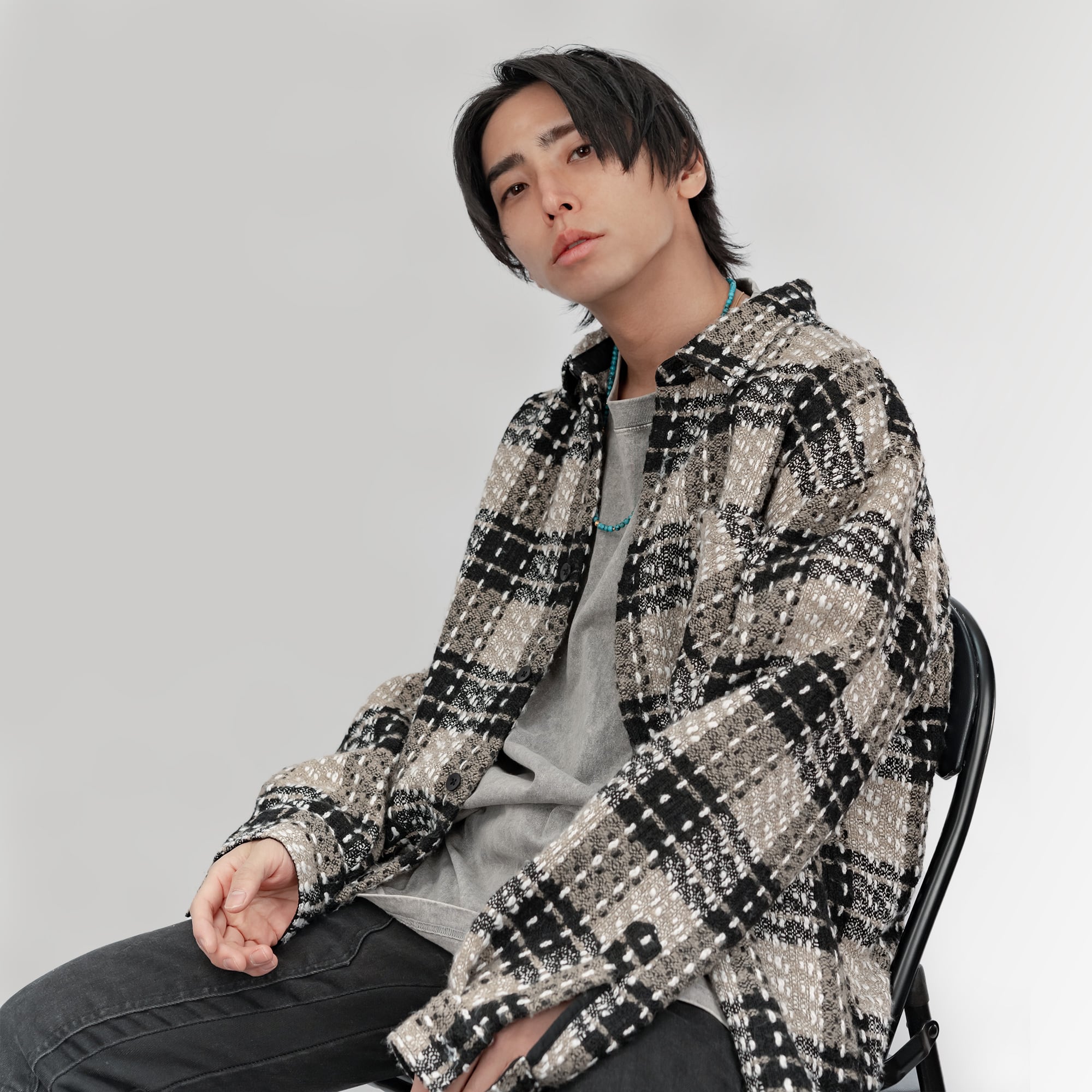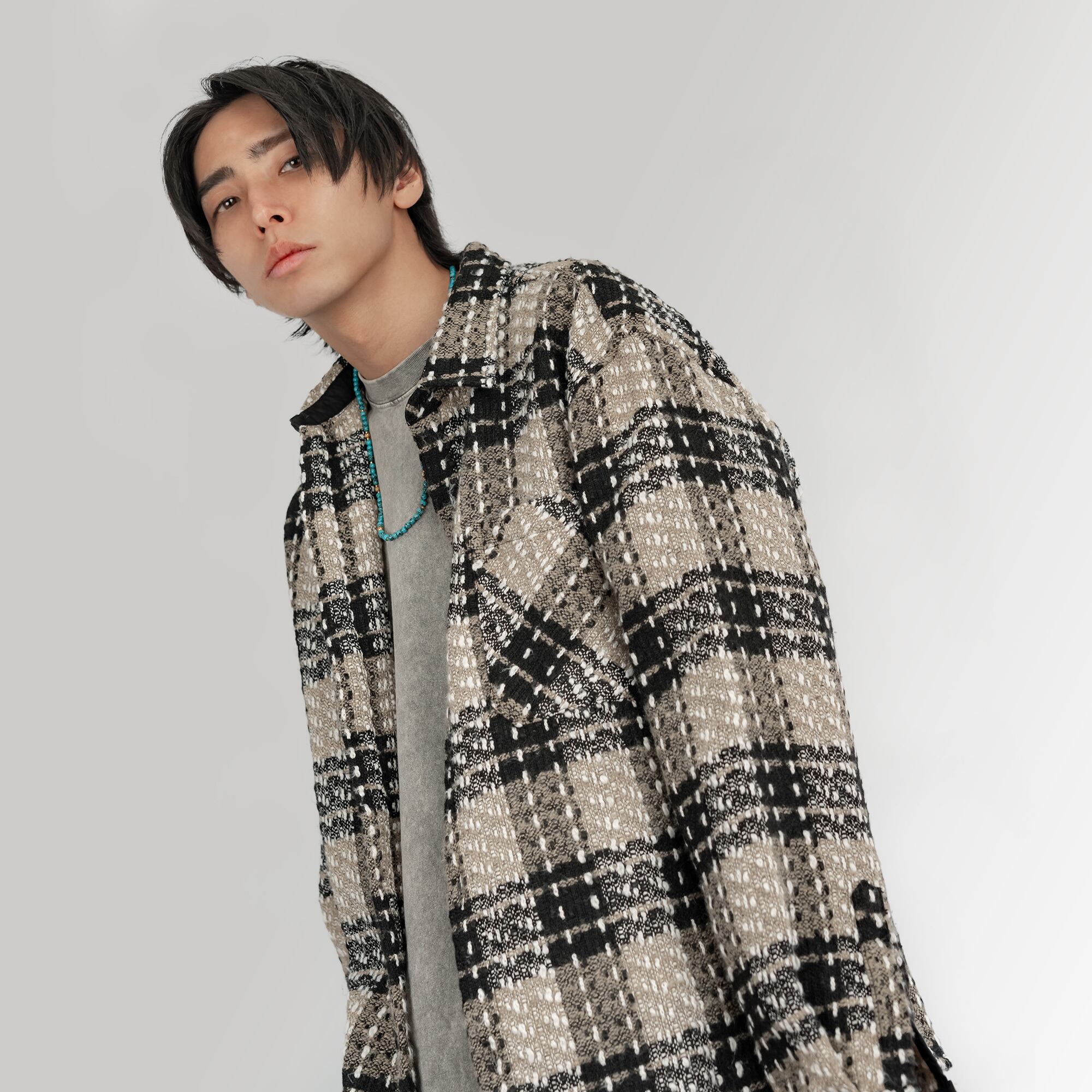ツイードでほどこされたチェックパターンが印象的なデザインシャツ。