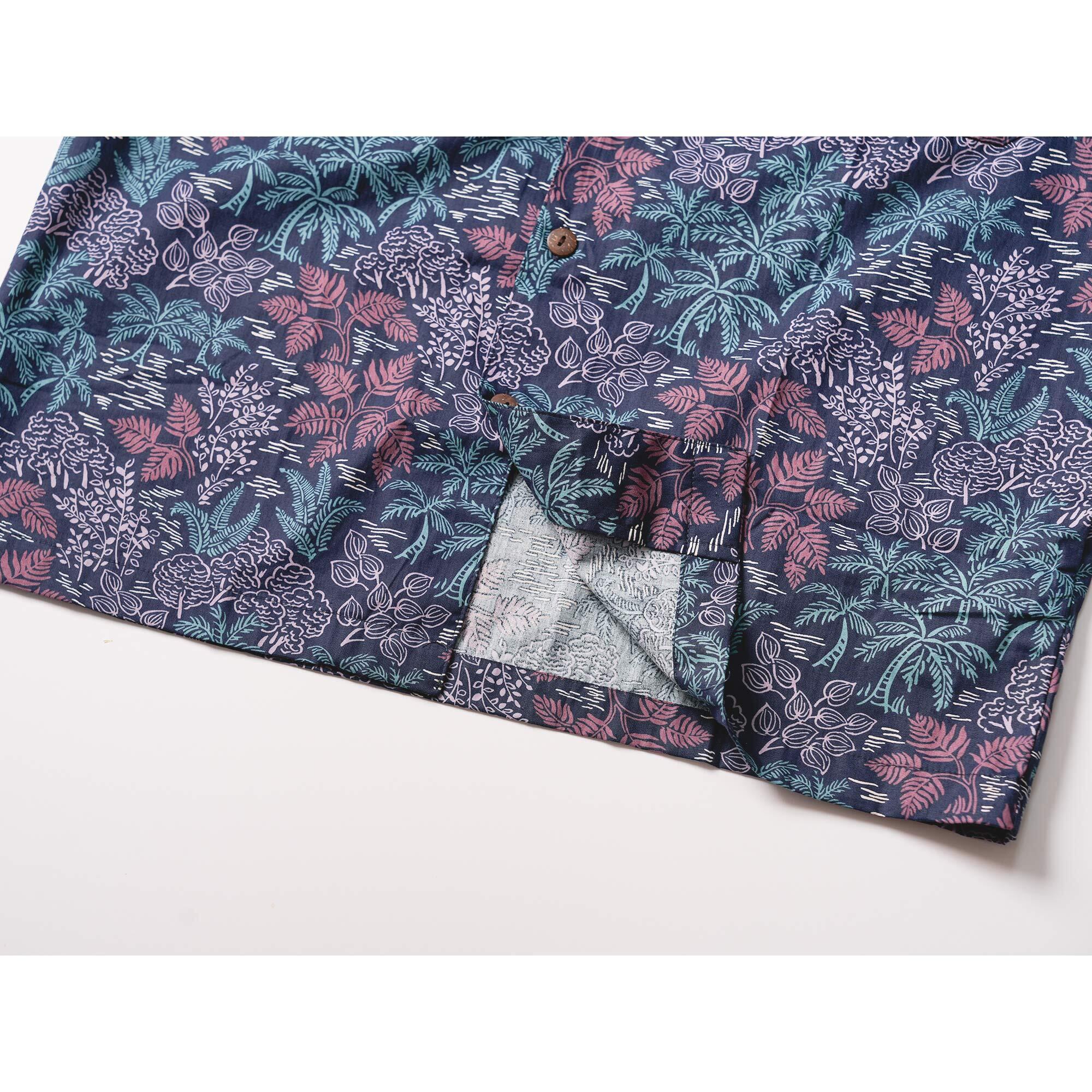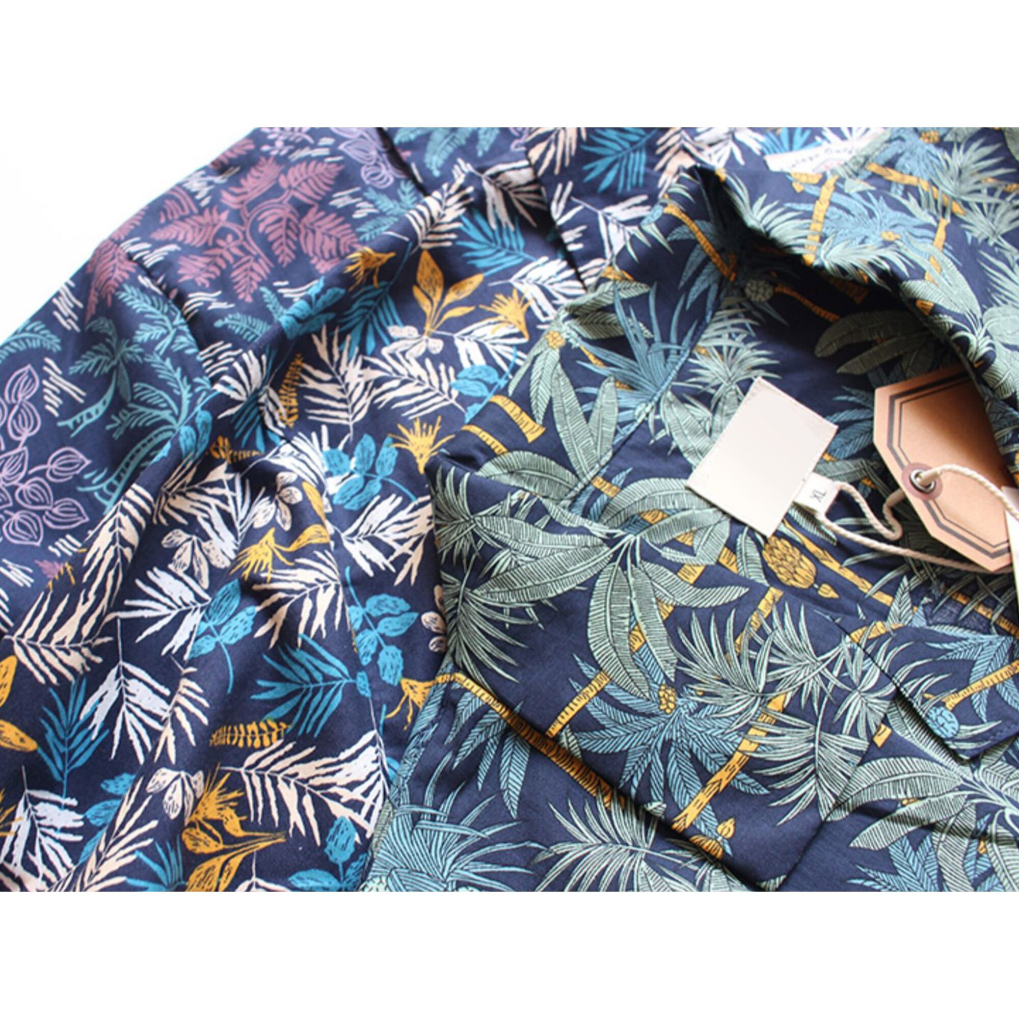 レトロでネオンテイストなボタニカルパターンが存在感溢れるデザインシャツ。
