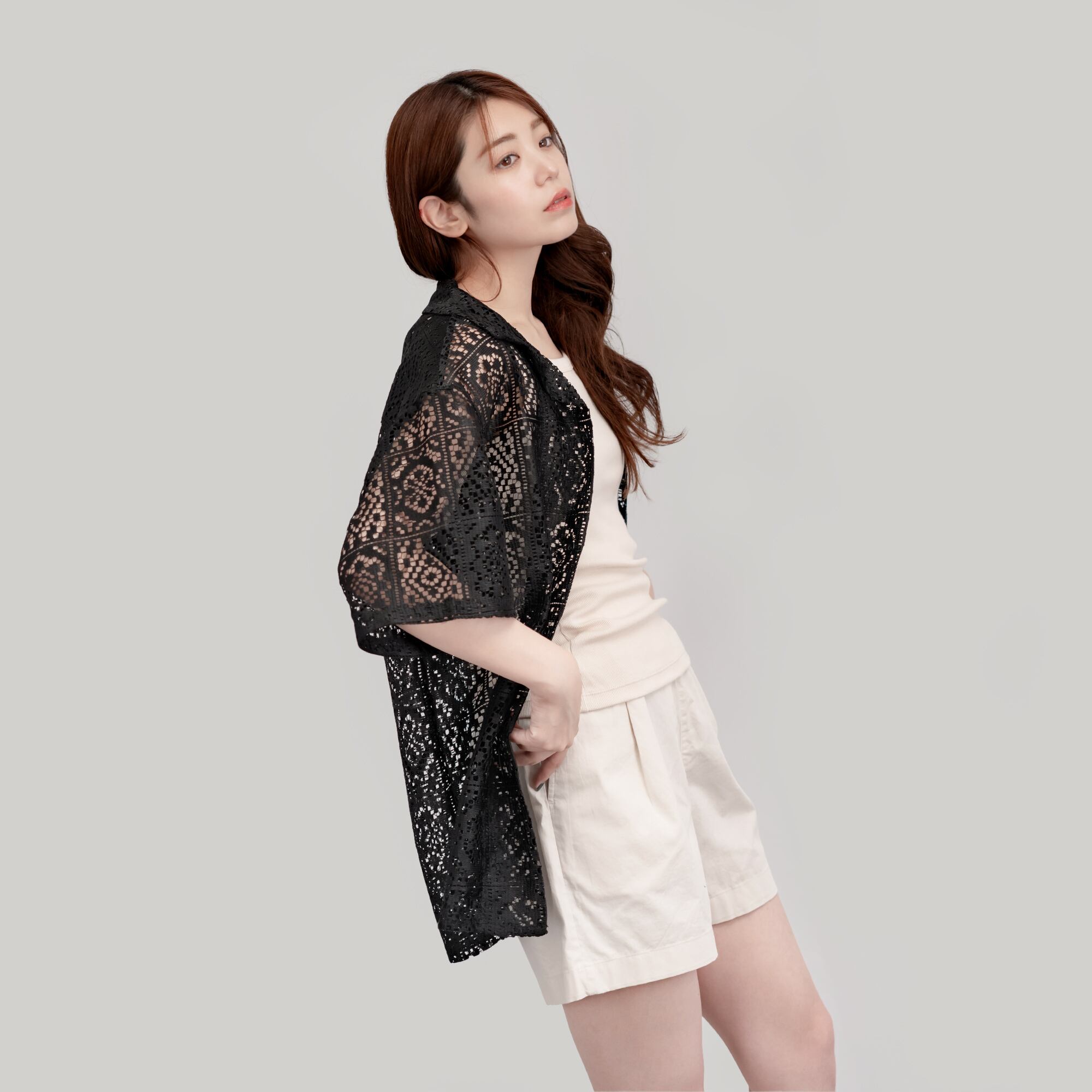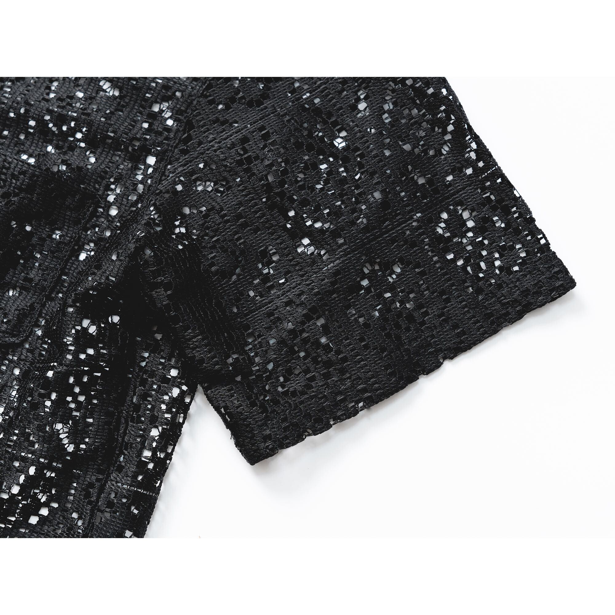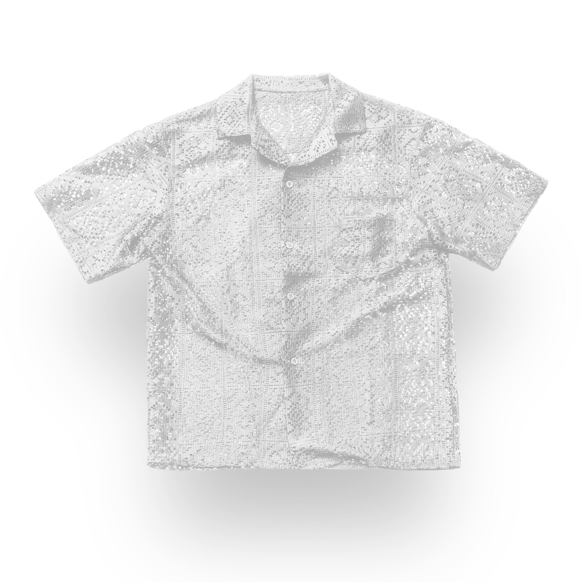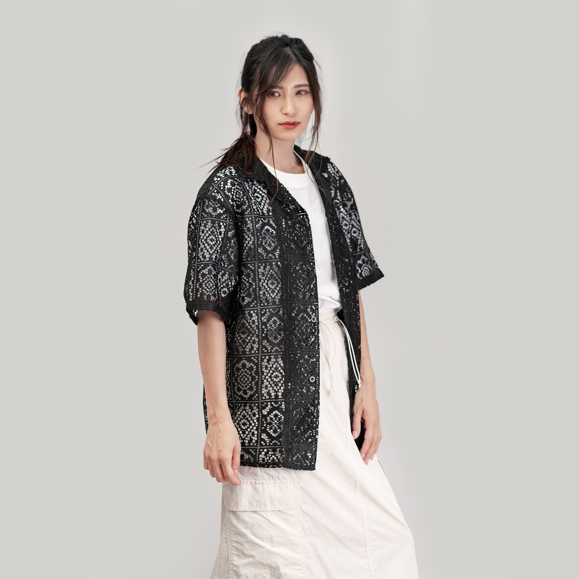 フラワーパターンに編まれたレースパターンが印象的なデザインシャツ、