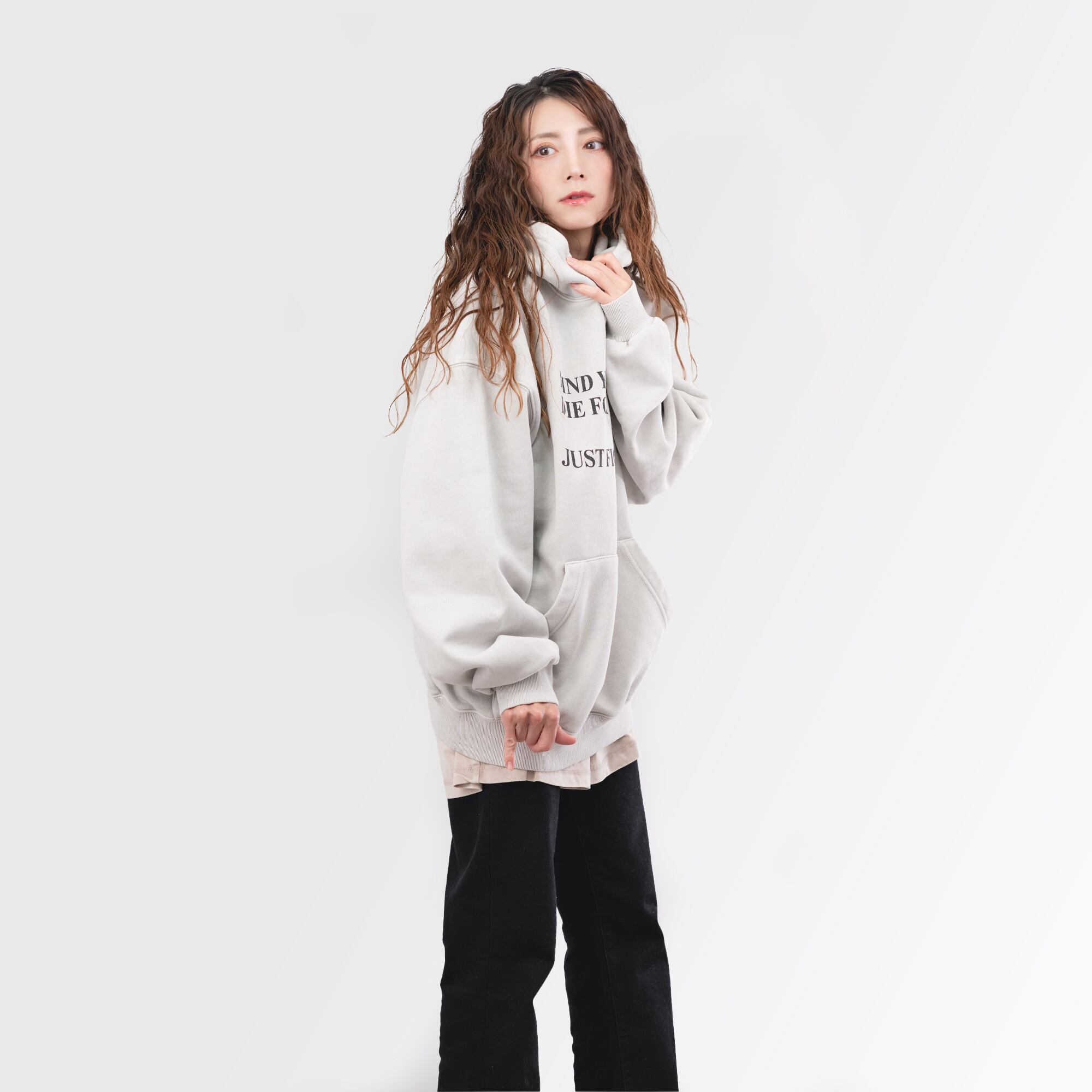 ショート丈で大きめのフードが特徴的なプルオーバーに、フロントの情熱的なアイコンが映えるアイテム。